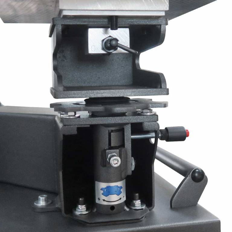 Állítható magasságú alapszekrény; további görgők állnak rendelkezésre a lengőprés könnyű mozgatásához.