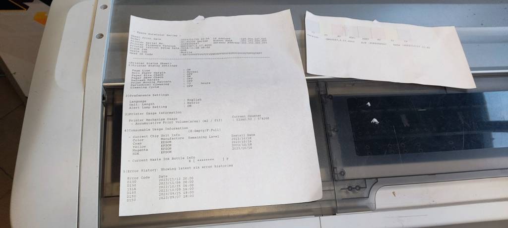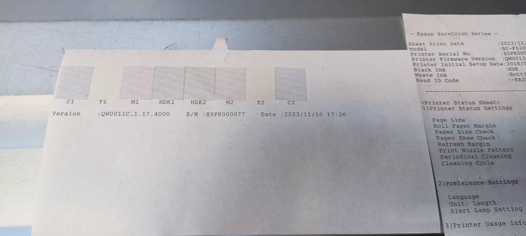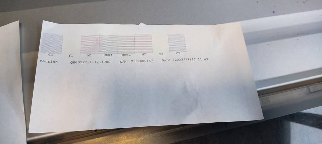 A fotókon látható a tökéletes fejteszt és a nyomtató állapotlapja.
